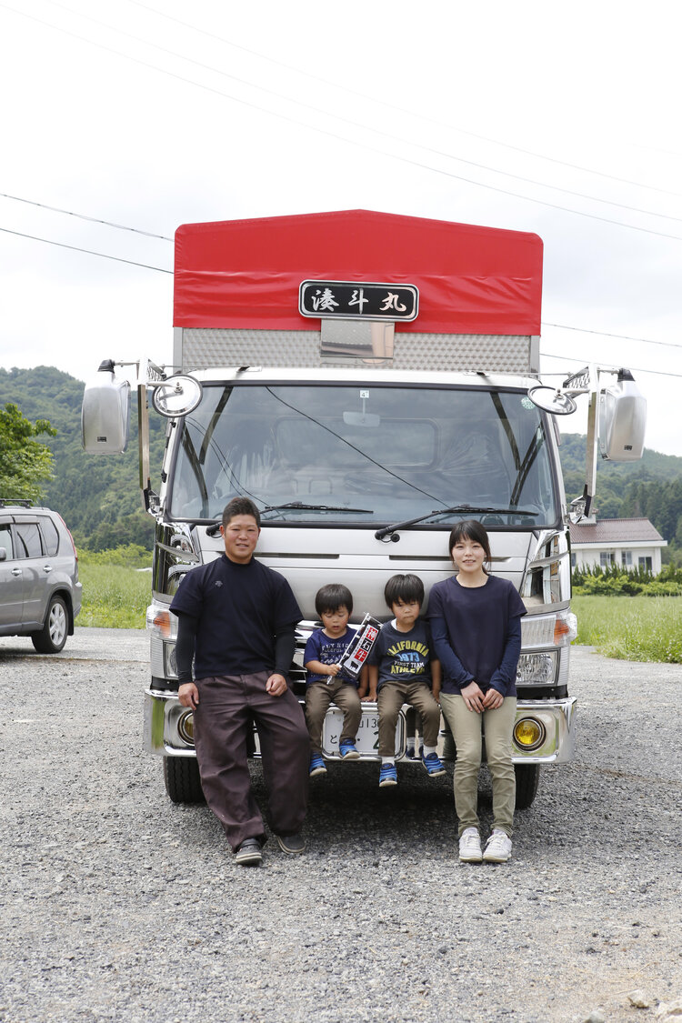 そんな奥平さんの自慢は、大好きな本職の牛飼いで頑張り、仕事でも使える大好きなトラックを買えたこと。さすが元トラックドライバーだけにトラックへの愛情も半端じゃありません。お子さんもお父さんのキラキラの愛車を前に誇らしげです。