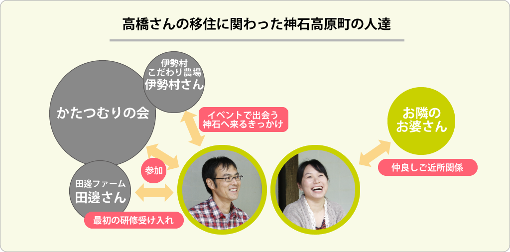 ちょうどその頃、語学研修を兼ねた2ヶ月の農業体験で香港から北海道にやってきたのが、奥さんのケリーさん。そこで髙橋さんと出会いました。当時,ケリーさんは看護師として香港で働いていたため,2ヶ月の農業体験を終えると帰国。そこから国際的な長距離恋愛がスタート。そんな折、髙橋さんは神石高原町に移住するきっかけとなる出会いにも遭遇します。