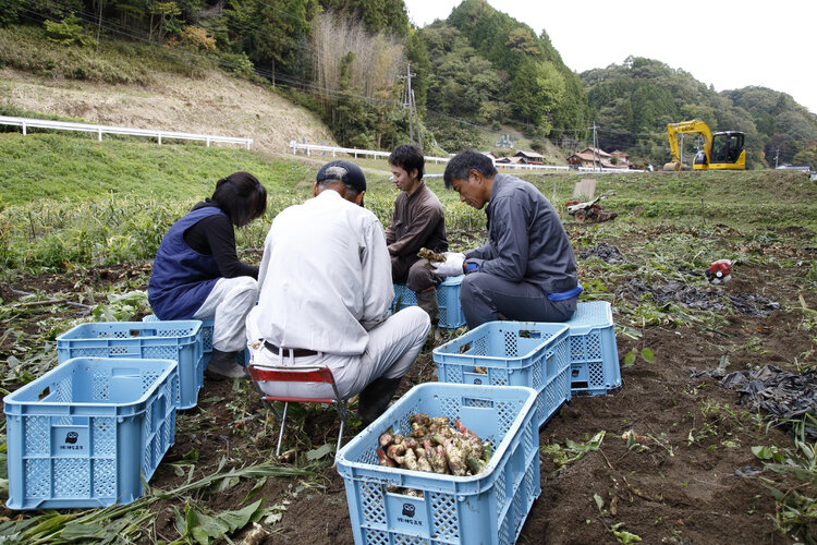 株式会社神石高原は十数人の会社で、74歳の社長を筆頭にスタッフの大半が60歳過ぎのベテラン揃い。そんな中に飛び込んだ金山さん、水を得た魚のようにイキイキと働きます。「名物のトマトではなくレアな野菜を作りたい」と言う目標を持って1年間がんばりました。そして漬け物屋さんをはじめ売り先を営業して拡大にも成功。「大学を卒業後に北海道でやっていた営業の経験が活かせたと思う」と金山さん。主力の生産物は、生姜とエゴマ。最近では漬物屋さんの要望で野沢菜も生産し始めました。