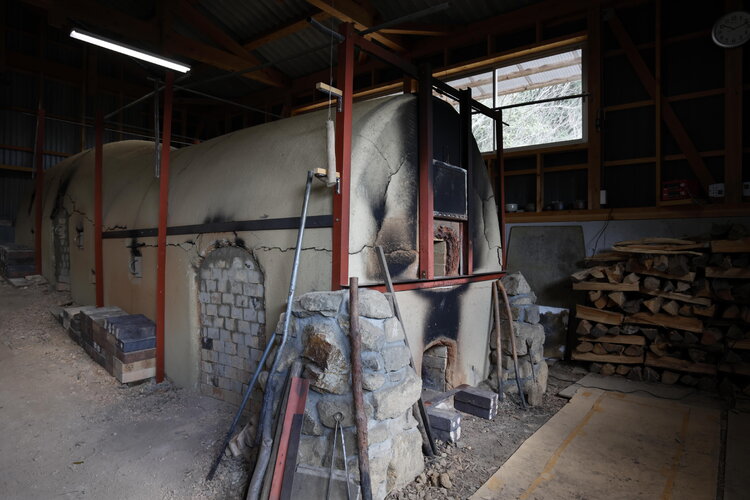 更に、神石高原町に移住する理由の一つにもなった薪窯(穴窯)は自作されています。そこでの窯焚きは1年に2回行い1回で450作品、更に陶芸の先輩後輩の作品も一緒に窯に入れるのだそうです。窯焚きの手伝いは泊まり込みで大人数になるため、本当に広いスペースが必要になります。