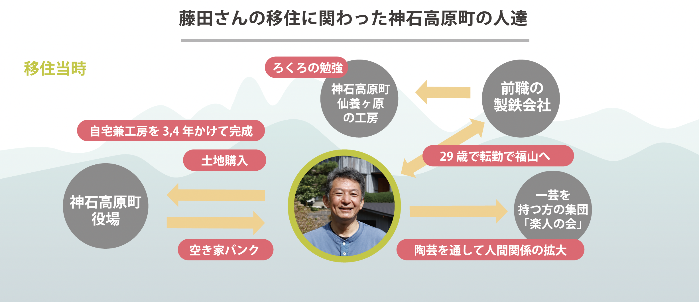 - 移住前:製鉄会社で材料開発に従事⇒移住後:陶芸家として開業