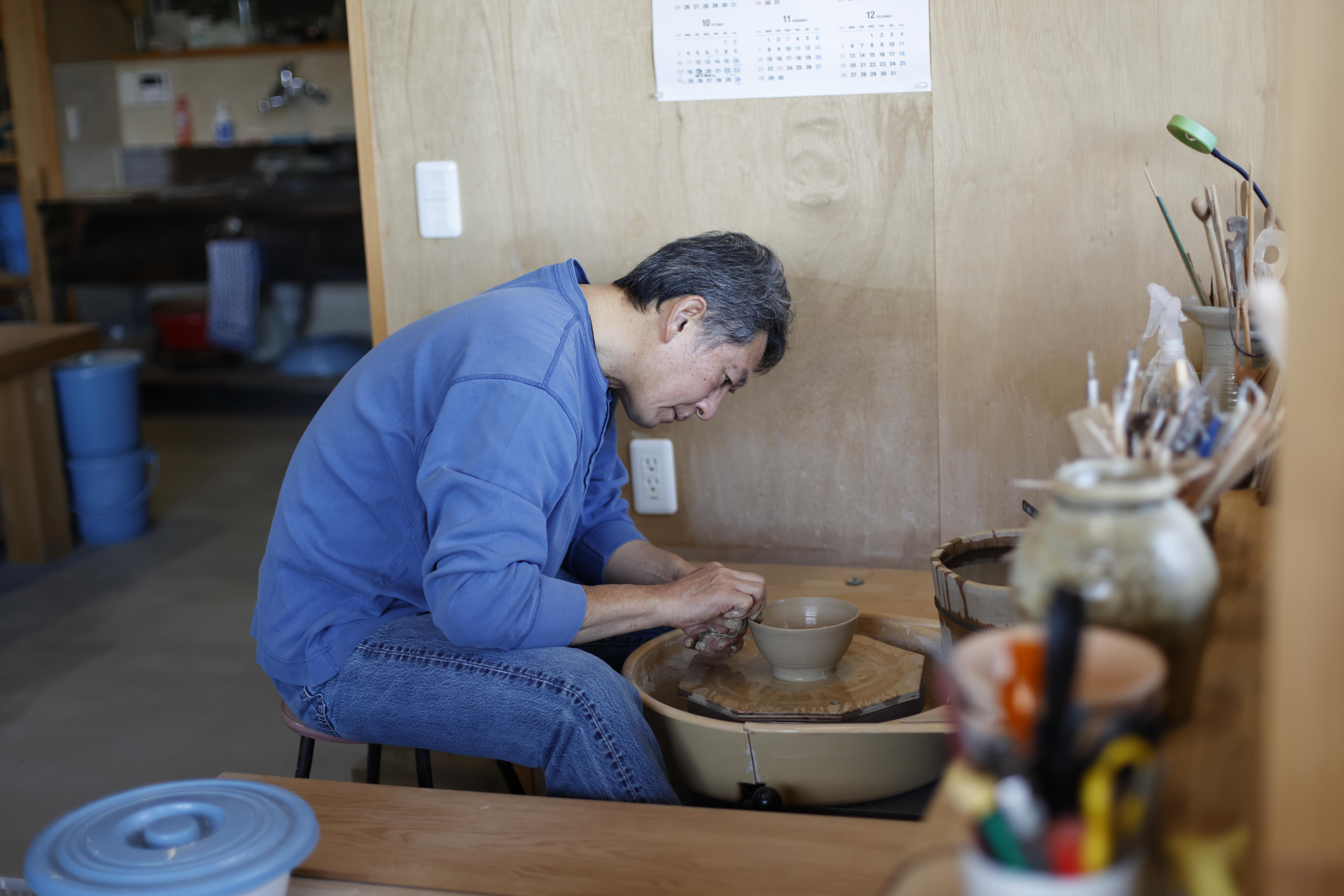 元々20代の頃から器が好きだった藤田さん。実は会社の陶芸部に入部されたのですが、多忙のため半年で辞めざるを得なくなります。その後、48歳で早期退職をし陶芸の道を志します。
